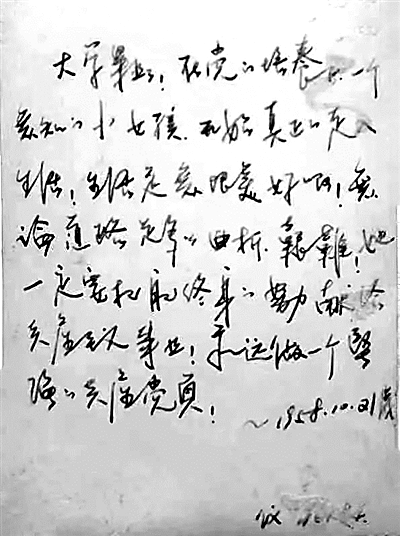 1958年10月21日晨,22岁的黄令仪写下了参加工作的自勉。